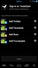*SOME HTC Devices will not run Facebook in TweetDark since Facebook is built into HTC phones (Stock Rom) - If using custom rom just delete Facebook*